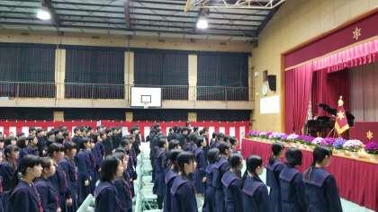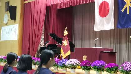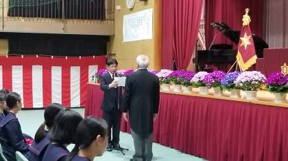 卒業生による別れの歌 「旅立ちの日に」「蛍の光」が終わり、閉式の言葉があり、卒業生保護者代表からの謝辞がありました。