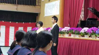 卒業生が退場します。拍手でお送りください。1組が退場します。2組が退場します。