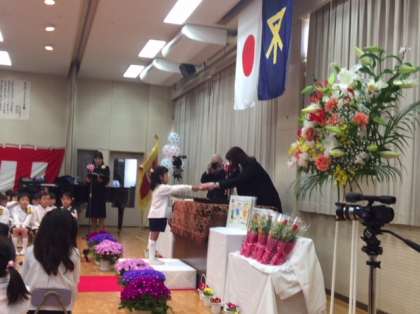 今日、園児が大きな声で将来のことや、歌を歌い、幼稚園を巣立っていきました。