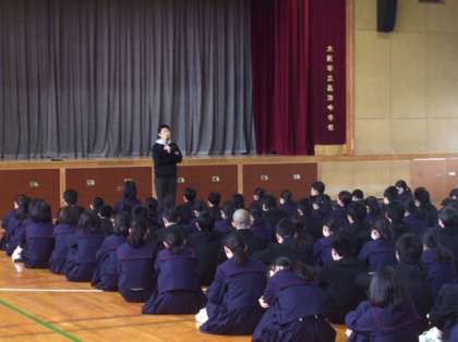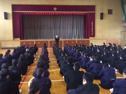 3時間目、2年学年集会を行いました。まず、白金先生から生活全般についての話がありました。春休み、安全に過ごしましょう。