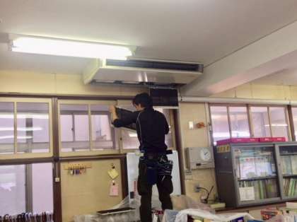 本日、特別教室や職員室などにあるエアコンの清掃を行いました。業者の方々が手際よく内部を清掃してくれました。