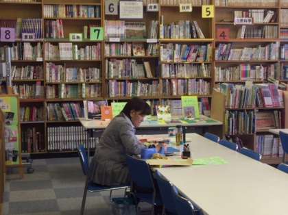 図書室は春休みでも火曜日開館しています。生徒はいませんでしたが、図書館補助員の方が新学期に向けて準備をしていました。