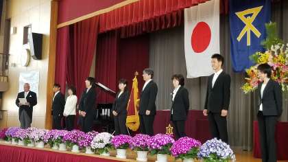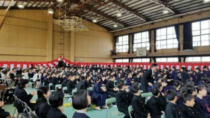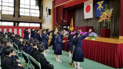 1年生の職員紹介がありました。その後、吹奏楽部のお祝い演奏があり、担任の先生を先頭に、新入生は退場しました。