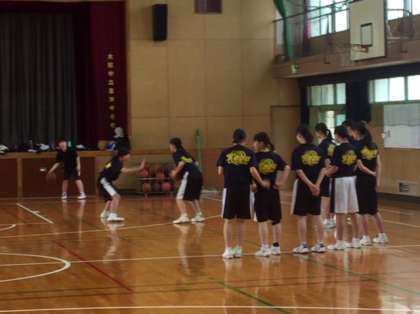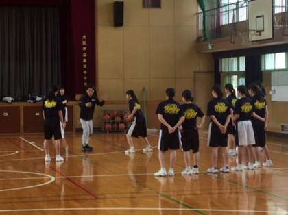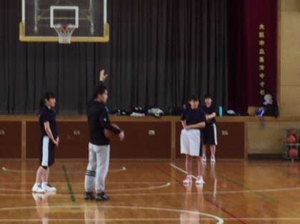 4月6日、体育館では女子バスケットボール部が練習しています。顧問の先生が熱心に技術指導をしていました。