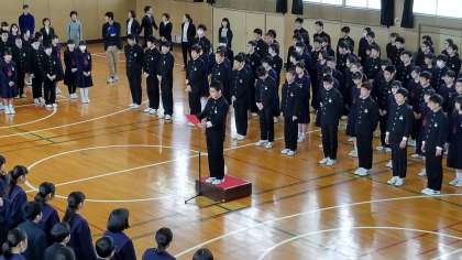 在校生代表の言葉のあと、新入生から、力強く誓いの言葉がありました。頑張って早く中学校に慣れてくださいね。