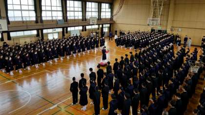 担任発表の余韻が残る会場でしたが、整列すればすぐ、静になり、対面式をおこなました。