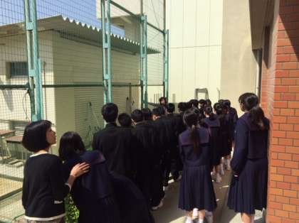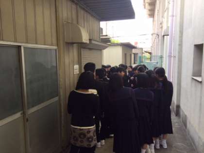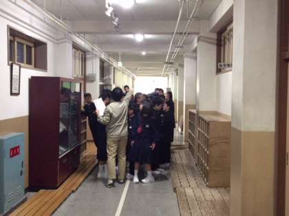 初めて見る施設ばかりなので、みんな興味津々でしたね〜。職員室前では、先生に用事などがある時の職員室への声のかけ方も学びました。