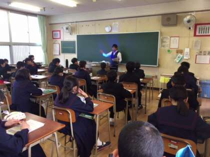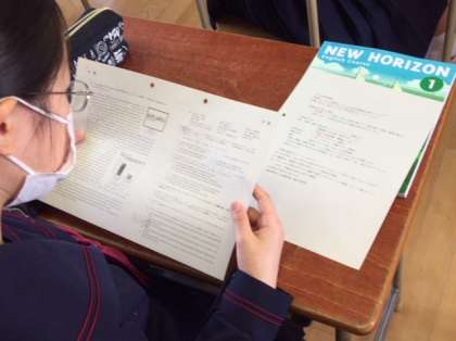 5時間目、中学生になって最初の教科の授業です。まっさらな教科書ですね。高校入試問題が配られました。「なんじゃコリャ?」の声が聞こえてきました。しかし、「勉強していくうちに3年になると解けるようになるんだよ。」と先生から話がありました。皆さん、頑張って勉強しようね。