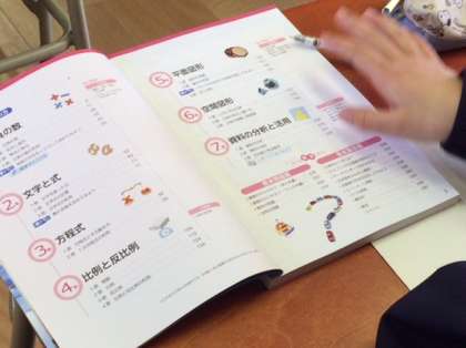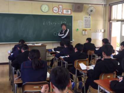 2組は数学の授業です。「マイナスなど、まだ、知らない数字がたくさんありますよ。小学校の頃より数学の世界が広がります。」しっかり勉強しましょう。