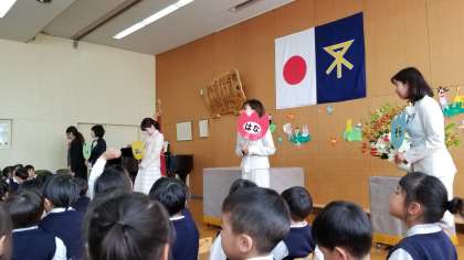 本日、真田山幼稚園入園式がありました。泣いている子もいましたが、元気いっぱいの子が入園してきました。おめでとうございます。