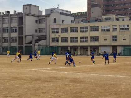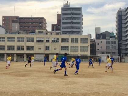 4月22日、サッカー春季大会予選2回戦が今宮小中一貫校のグランドで行われました。今日の相手は蒲生中学校です。前半リズムに乗って試合を進め、2ー0で折り返しました。