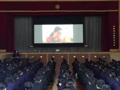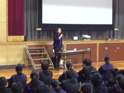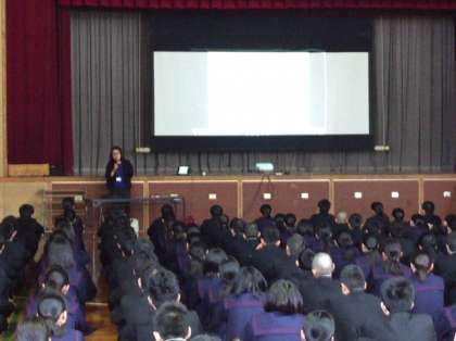 全校集会に引き続き、体育館において、携帯・スマホ安全教室を行いました。NTTドコモより講師の方を招いて、SNSについて正しい使用法や被害の現実などをDVDを通してやスライドショーなどで説明いただきました。