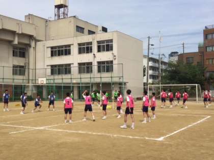 3年体育の授業の様子です。男子はグランドでバレーボールの授業です。ネットを挟んでのパスの練習をしました。なかなかパスがつながりませんね〜。