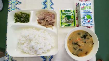 本日の献立は、豚のしょうが焼き、じゃこピーマン、みそしるです。おいしかったですね。