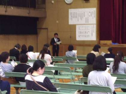 授業参観の後、体育館においてPTA決算総会を開催しました。平成29年度の事業報告、会計報告、会計監査報告について審議され、承認されました。