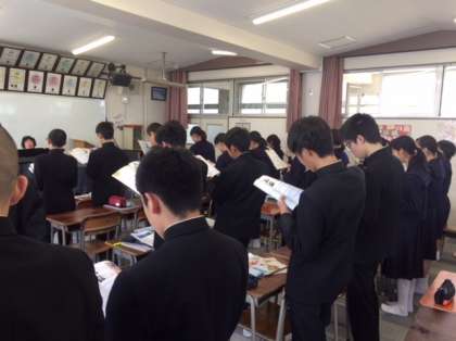 3年音楽の授業の様子です。まず歌唱練習をしました。滝廉太郎作曲の「花」です。(春のうららの隅田川〜)まさに春の歌ですね。このあとはリコーダーの練習です。曲は「威風堂々」です。聞き慣れたいい曲ですね〜。