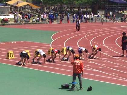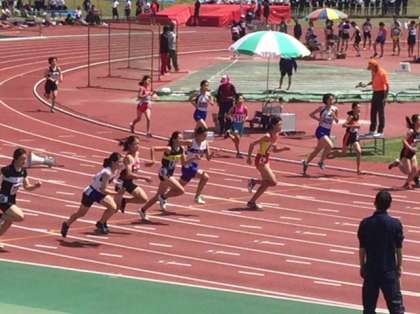 大変暑くなってきました。しっかりと水分補給をして頑張りましょう。写真は女子100mと1500mの様子です。