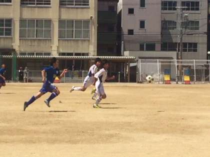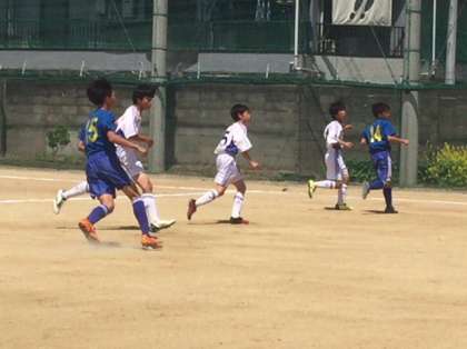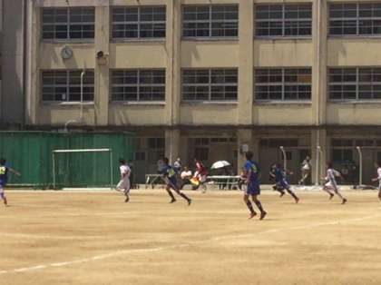 4月29日、サッカー春季大会予選が今宮小中一貫校のグランドで行われました。このグループの準決勝になります。相手は港南中学校です。前半3ー0でリードしています。