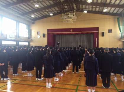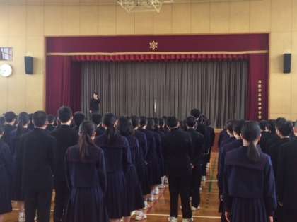 全校集会を行いました。校長先生から言葉の使い方について様々な例をあげながら話がありました。相手の気持ちになって受け応えする、例えばイエスバット法というコミュニケーションの取り方もある。そういった心遣いが人間関係を良くするという話もありました。今後、気をつけていきましょう。