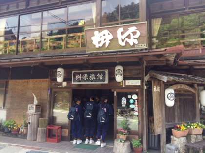 枡源旅館に到着しました。男女別に本館別館と向かい同士の宿になります。現在の気温は11度です。少し寒い。