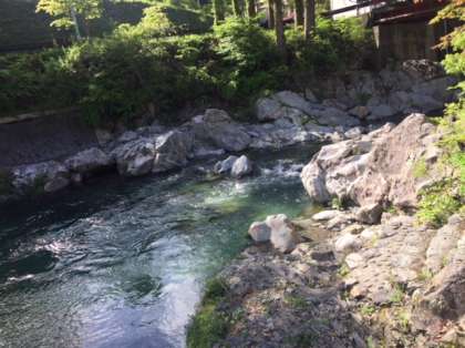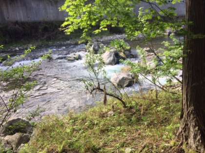 空気はきれいし、川はいい音がしているし、おまけに藤の花がすごく美しい。