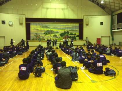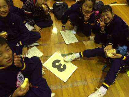 表彰式と夜食です。レクレーション大会の優勝は1組でした。夜食のクリームパンは美味しかったですか。