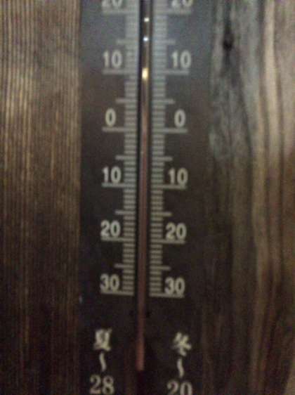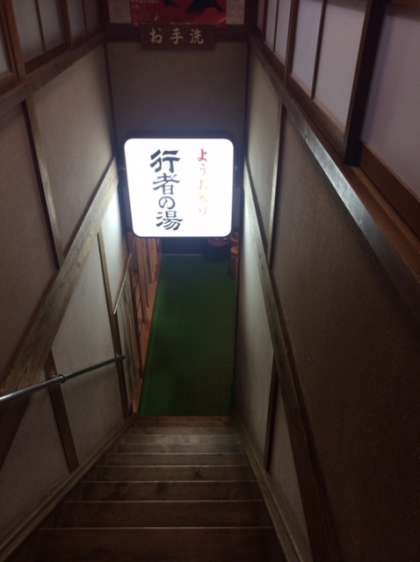 入浴をしていますが、風呂場に向かう階段のみの紹介になります。季節になると行者さんが宿泊する宿です。10時頃の外気温です。見にくいですが、4度です。大変寒くなっています。