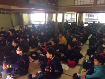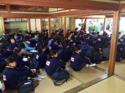 オリエンテーリング出発前の事前指導です。色々なポイントを班単位で回ります。初めての所なので地図をよく見て協力していきましょう。