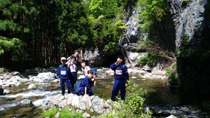 どの班もどんどんポイントを通過していきます。蟷螂の岩屋ポイントです。
