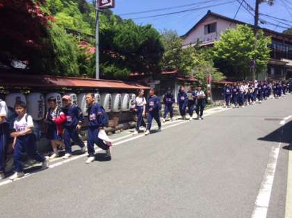 最後の昼食のため旅館に戻ってきました。いい天気の中で活動できて良かったですね。