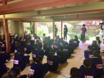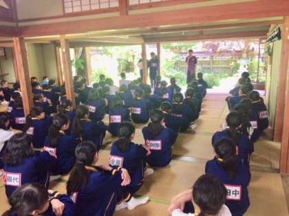 退村式を行いました。生徒代表のお礼の言葉のあと、枡源旅館の女将さんからお話をいただき、退村式を終えました。