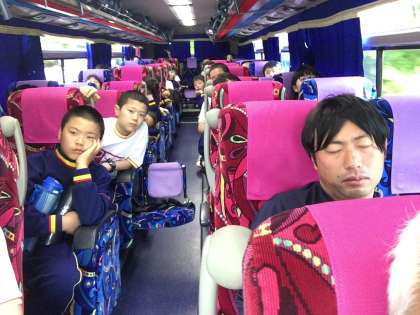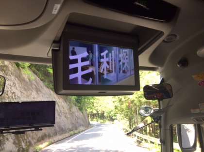 帰りのバスは洞川を13時15分頃出発しました。1号車はDVDでコナンをみています。寝ている生徒も多いように思います。