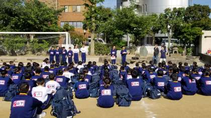 学級委員の司会で帰校式がはじまりした。一泊移住で課題がわかりました。この課題を解消するように頑張りましょう。また、生徒代表の話がありました。