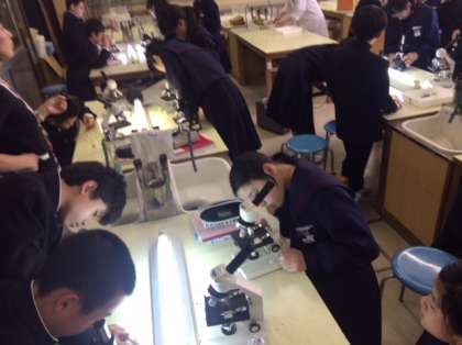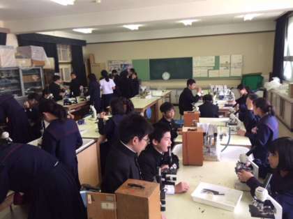 1年理科の授業の様子です。今日は理科室で実験を行いました。「水の中の小さな生き物を観察する」ということで、顕微鏡を使って、池の水を調べてみました。さあ、どんな生き物が見えたのでしょうか。