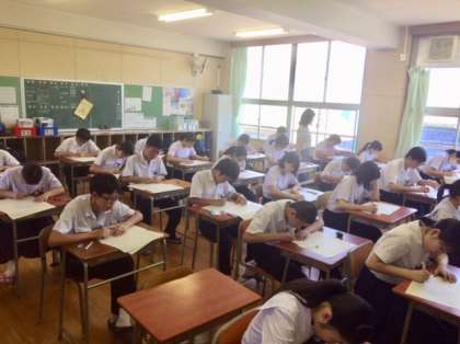 5月22日、中間テスト2日目です。今日は国語と数学です。写真は3年生の様子ですが、やはりテストに向かう姿に何かしら気合いが感じられます。