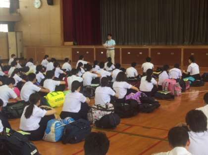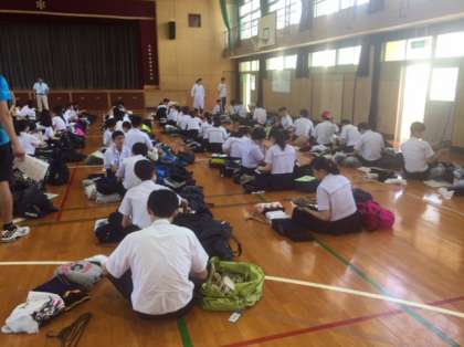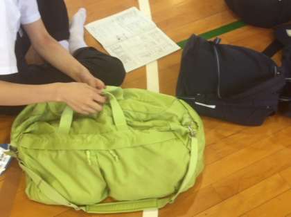 5時間目、体育館において修学旅行の準備がきちんと出来ているか、最終点検を行いました。ぬけている物は無いですか。明日の朝は早いですよ〜。