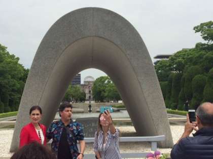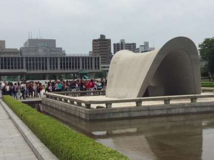 平和記念公園内はたくさんの外国人観光客が訪れています。