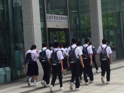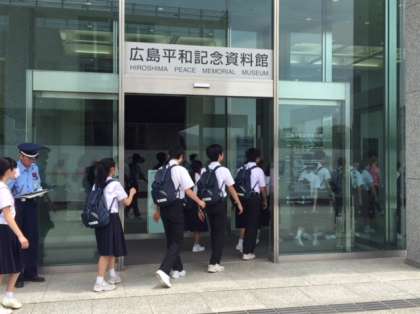 昼食の後、平和記念資料館に入館しました。まず、被爆体験講話を聞きます。