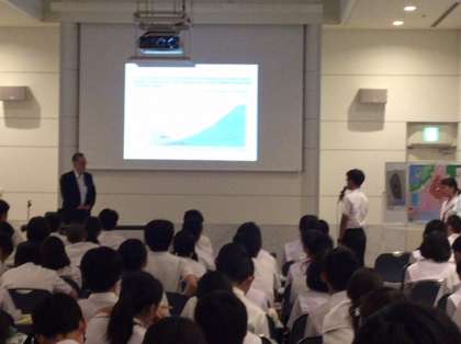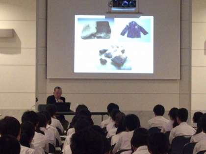当時、先生の命令で爆心地から離れた農場にいた山本さんは奇跡的に助かったそうです。貴重な話をありがとうございました。終了後、二人の生徒から質問があり、代表生徒のお礼の言葉で締めくくられました。