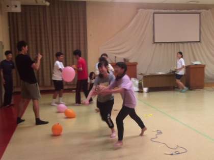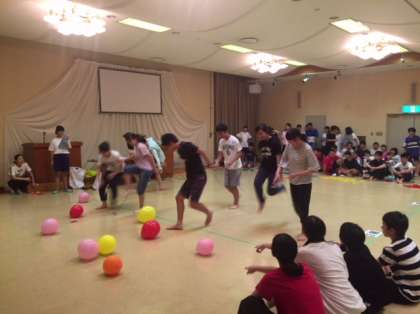 風船を身体を使って割り、中に入っているお題の通り何かを借りてくる。