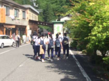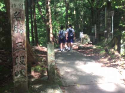 三段峡トレッキングがスタートしました。地元ガイドさんの引率です。