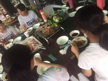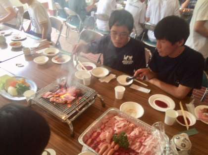 すごい食欲の班がありますね〜。余った肉がまわってきました。