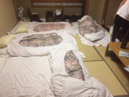 就寝時間になりました。少し遅れている部屋もあります。早く寝ましょう。
