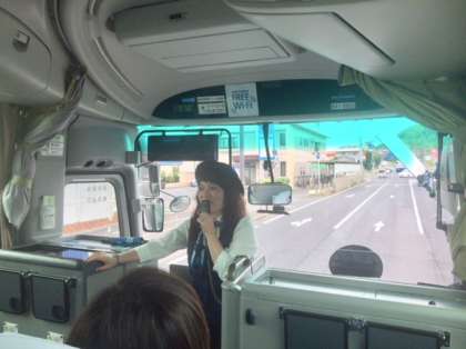広島弁炸裂のバスガイドさんです。宮島のもみじ饅頭の話をしてくれました。720円のジャンボもみじ饅頭があるそうな。すごいですね〜。でも買わない。