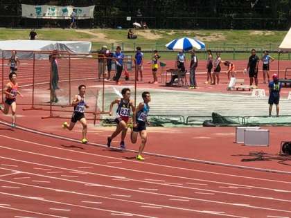 男子800m決勝の様子です。3年男子、2分07秒76で準優勝です。好タイムで府大会進出です。よく頑張りました。