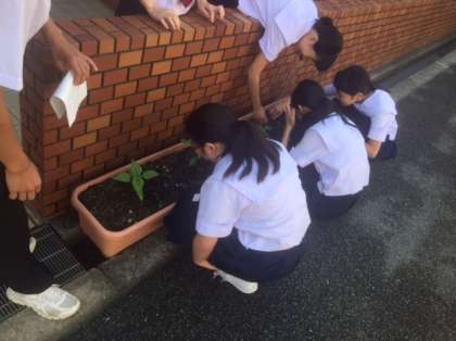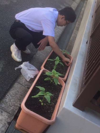 6月4日、「はるかのひまわり」はだんだんと大きくなっています。今朝はプランターの雑草抜きをしました。