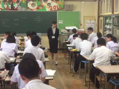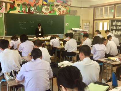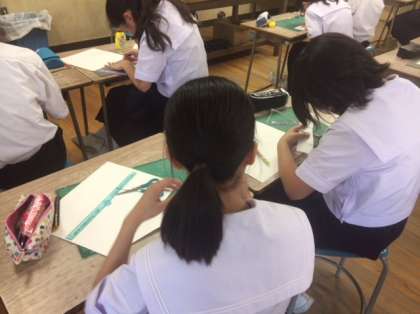 1年美術の授業で実習しています。最後の研究授業まで指導教員の指導を受けながら授業研究を繰り返します。