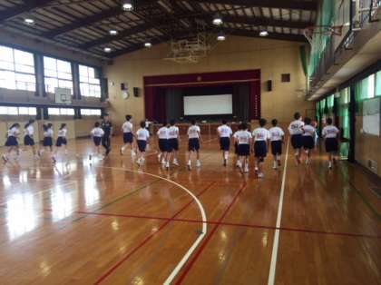 1年体育の授業の様子です。20mシャトルランを行いました。だんだん速くなるのでしんどいですね〜。頑張れ〜!