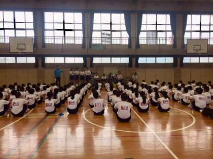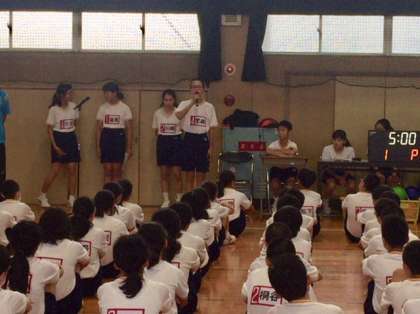本日午後、1年生は体育館においてドッジボール大会を行いました。開会式です。生徒代表のあいさつ、選手宣誓などが行われました。