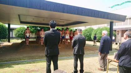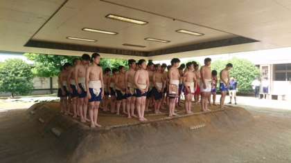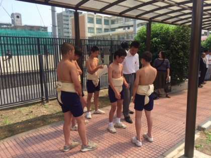 6月9日、鶴見橋中学校の土俵において春季総合体育大会の相撲の部が行われました。本校から柔道部5人が参加しました。